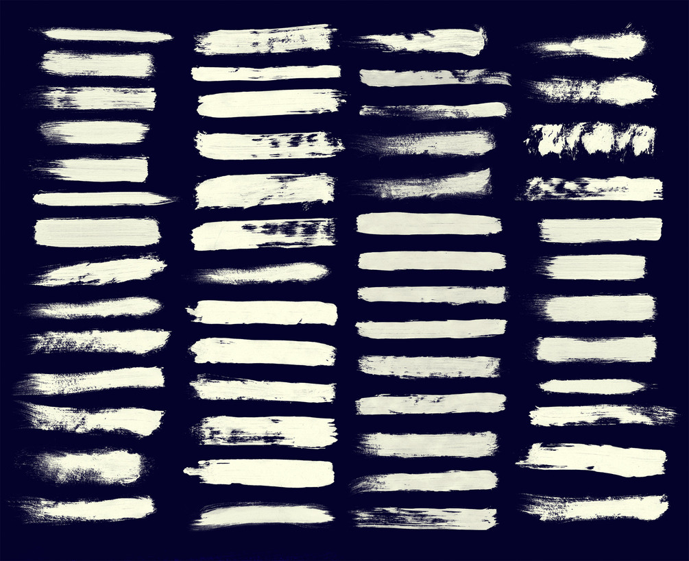 Install my collection of Photoshop Dry Brushes to have a variety of bristly brush strokes within reach for all your design projects. Made with real paint, each brush features an authentic texture with wispy lines and rough edges, making them perfect for creating realistic painted effects, or distressing your artwork by applying the brushes within a layer mask. With over 53 brushes to choose from, you have a wide choice of natural brush effects, from thick daubs to dry smears.